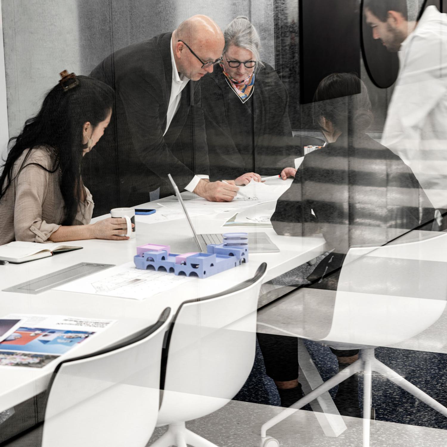 From conception to completion, each project is advanced by a dedicated, tight-knit team of designers and managers led by an experienced project architect, with comprehensive support by our in-house specialists, including model-building, visualisation, graphic design, and BIM.