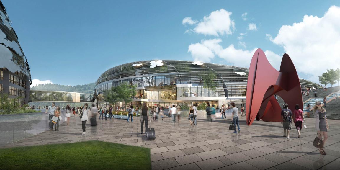 The project is conceived as a mixed-use development that operates around the clock. Its volumes are carefully composed to accommodate passenger flows, retail, and public programmes. Elevated walkways and internal connections maintain circulation and activate the space throughout the day and evening.