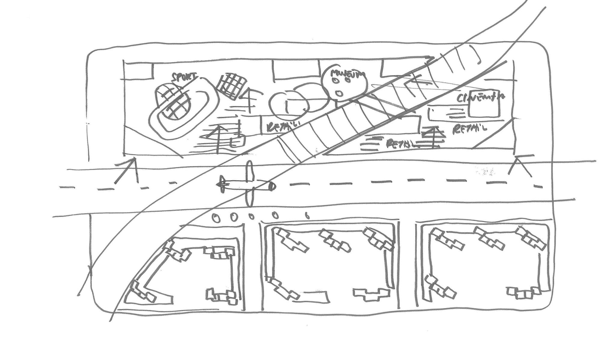The masterplan proposes an active pedestrian-oriented environment with a balanced mix of uses to support urban regeneration. A central design gesture, the reuse of the former runway, anchors the new district with a continuous open space for walking, leisure, and cultural programming. CLOU’s approach carefully integrates the site’s aviation heritage with future-facing development.