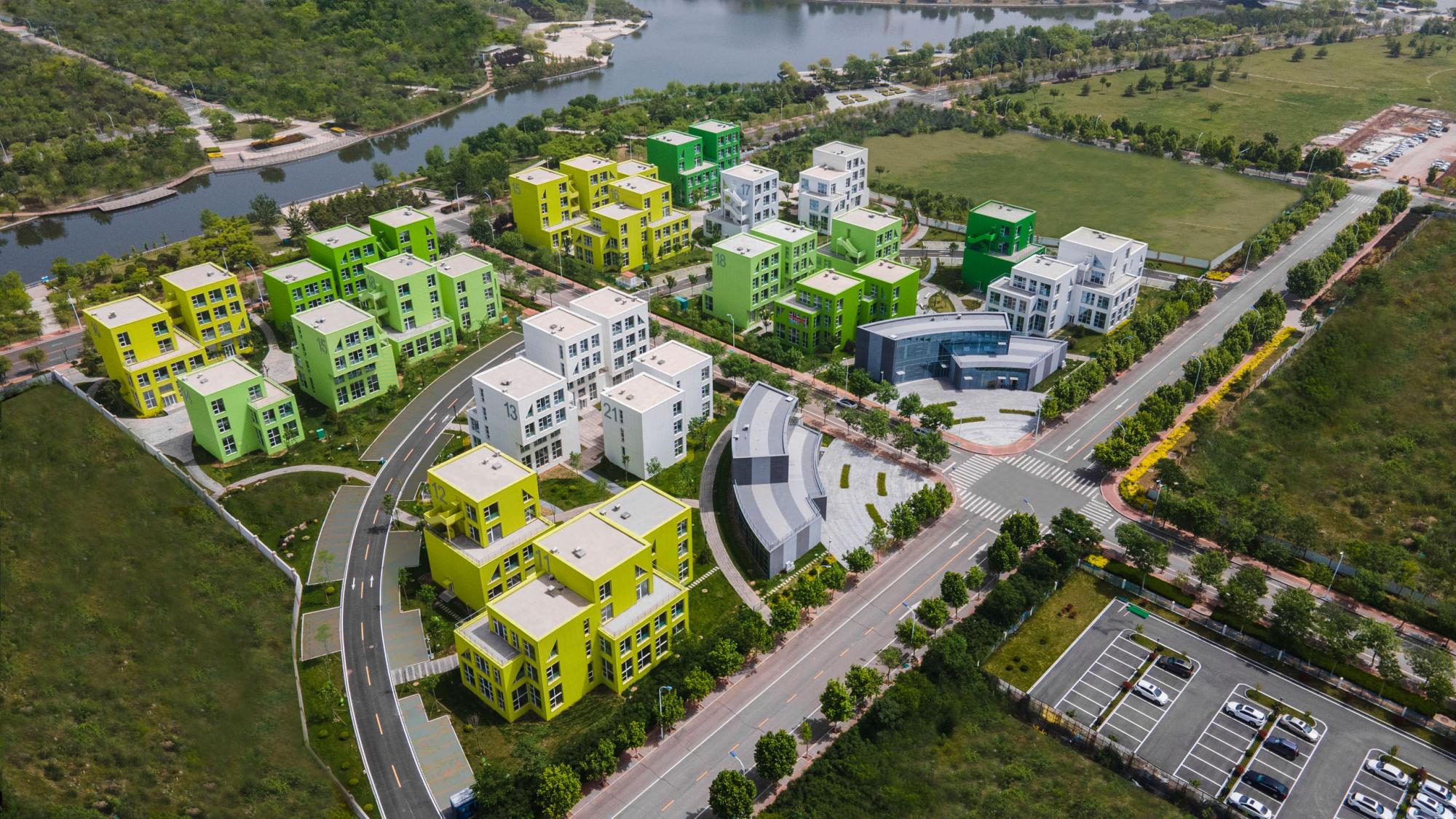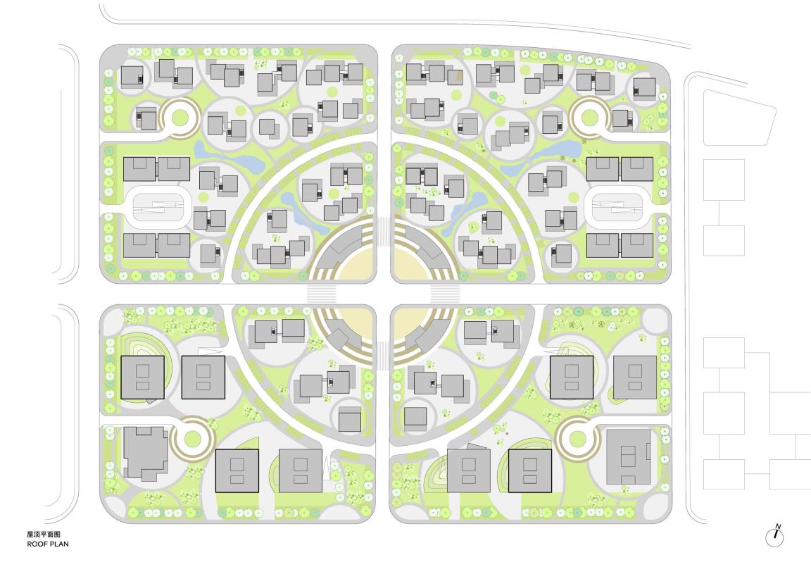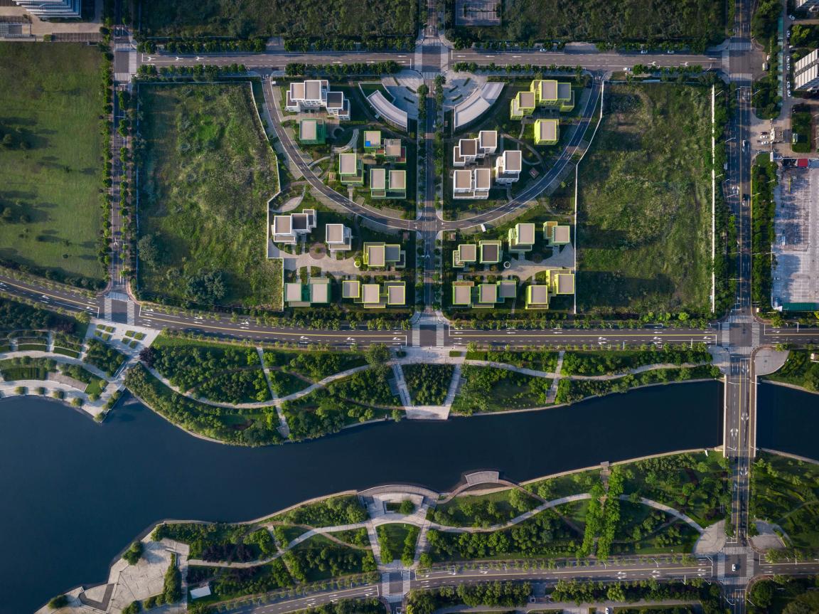 The project is positioned as a headquarter base for enterprises in research and development (R&D) of high-tech manufacturing, a R&D centre of advanced high-end equipment, and a R&D and international exchange centre of marine equipment. The whole park is composed of four plots: the northern plots oriented towards the canal while the southern plots are directly connected to the city’s transportation network. Single-volume office complexes of ecological enterprises, architectural morphology of low-rise buildings, clusters of landscape design and floating gardens as rooftop terraces are orchestrated in place to create low-density, garden-styled workplaces with green ecology at the core, where technology, nature, architecture and landscape are tightly aligned.