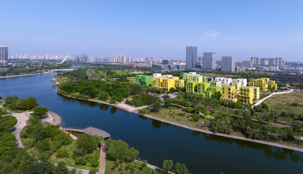 For the first park of green construction in Qingdao High-tech Zone, CLOU’s masterplan design incorporates circulations that divert people and vehicles. Nearly 90% of the areas in the park are pedestrian-friendly, maintaining a low-carbon, vehicle-free riverside ecological environment across all office areas.