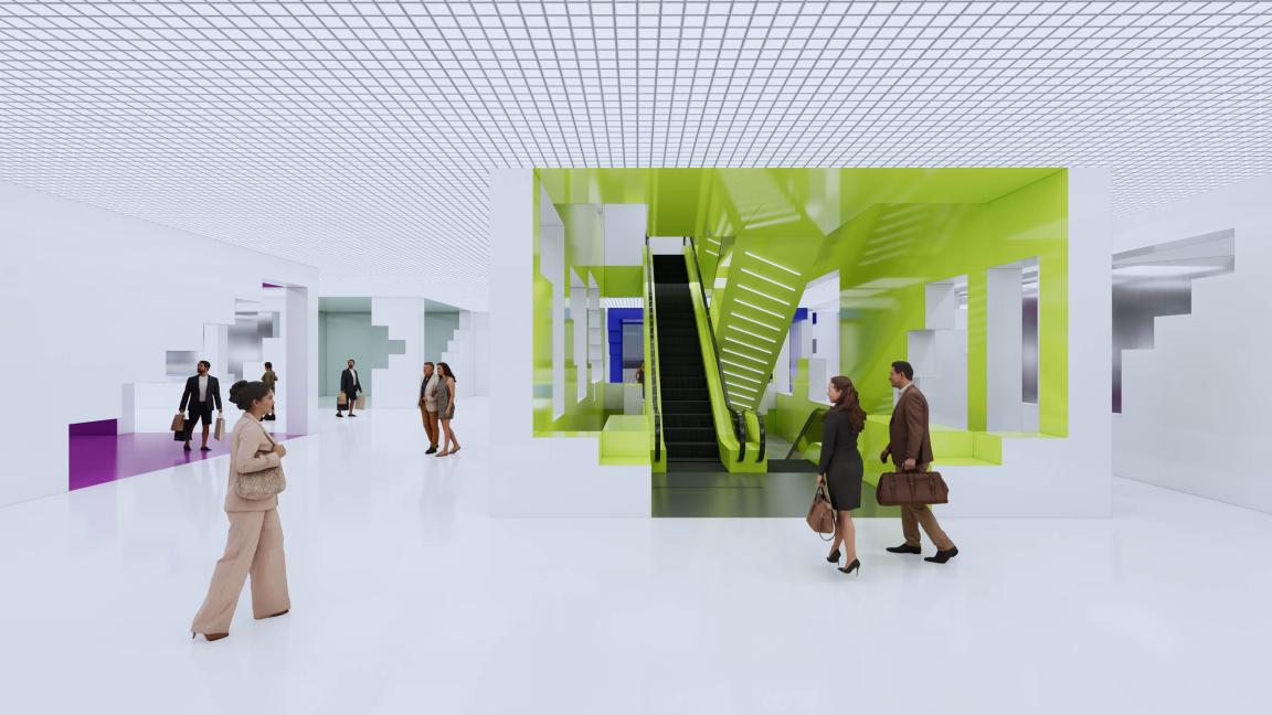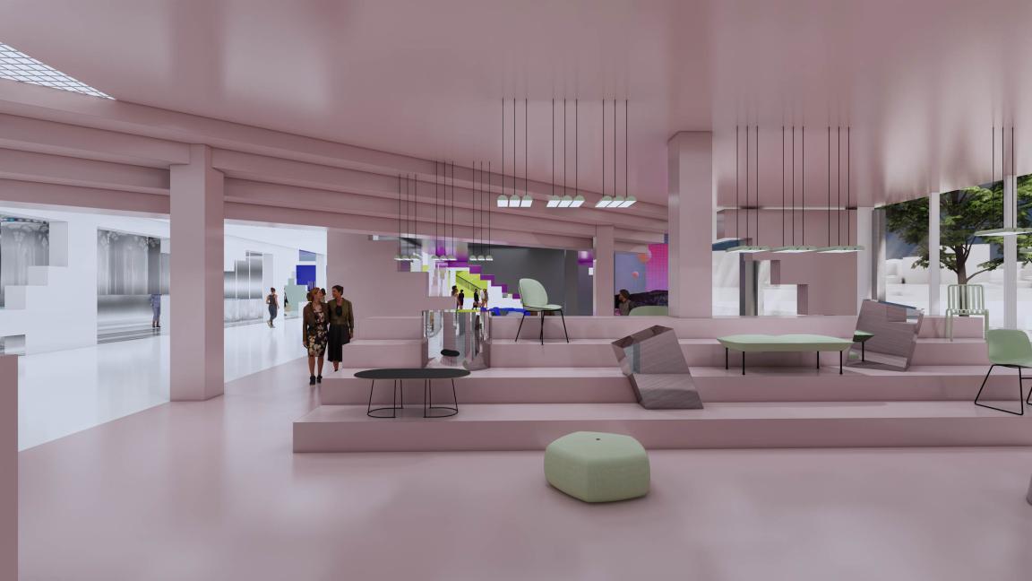 The ‘Art Village’ concept transforms the showroom into a museum-like experience. Furniture is displayed as art, placed in curated rooms that guide visitors on an exploratory route. Immersive installations and interactive zones encourage discovery, while supporting ancillary spaces such as cafés, bookshops, and scissor escalators enhance the social atmosphere.