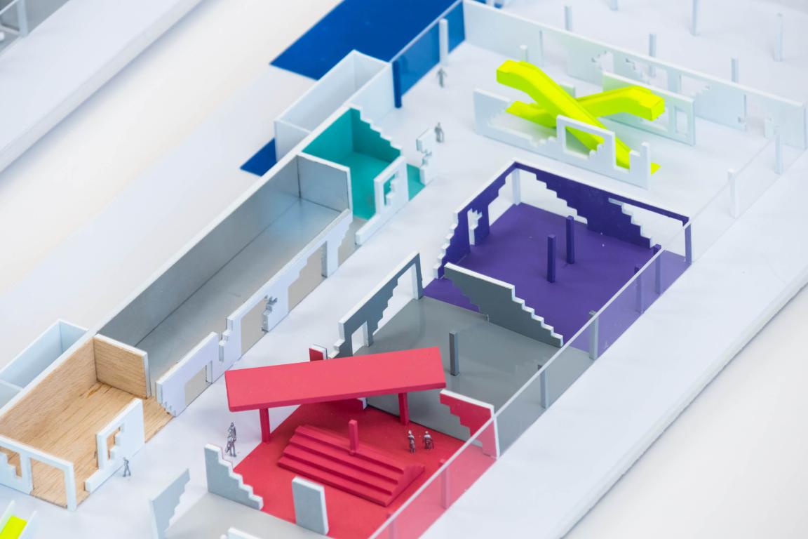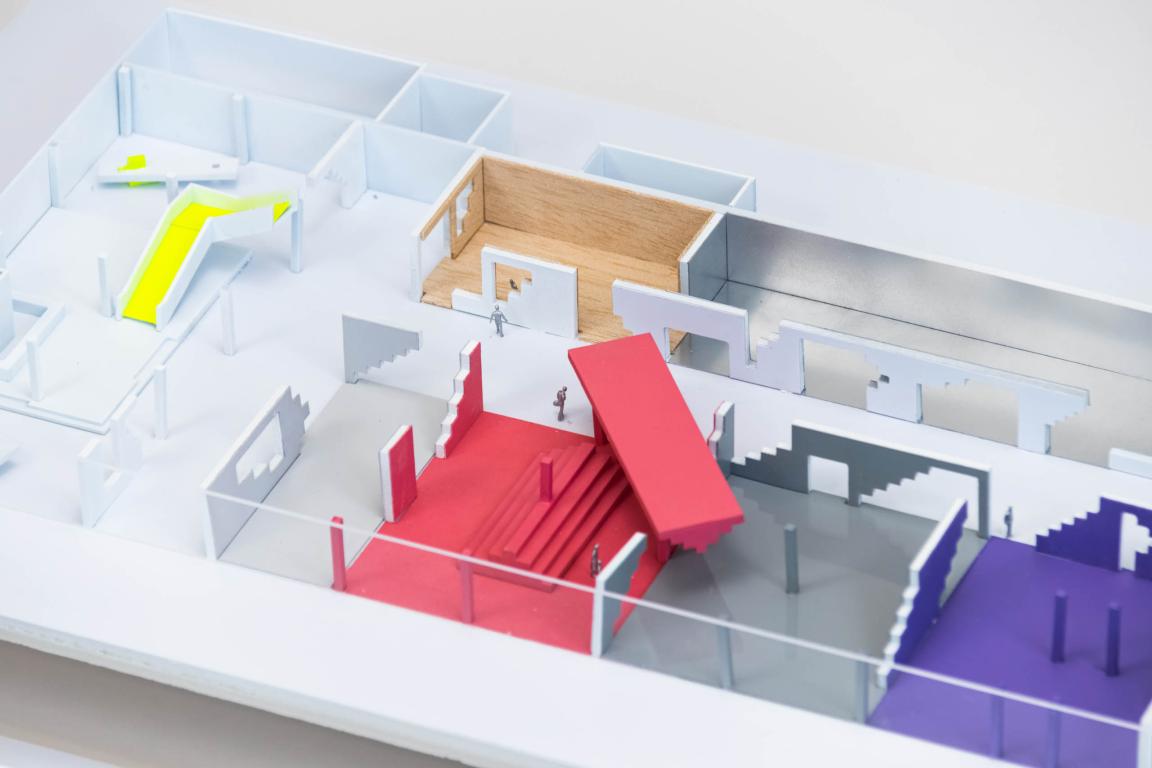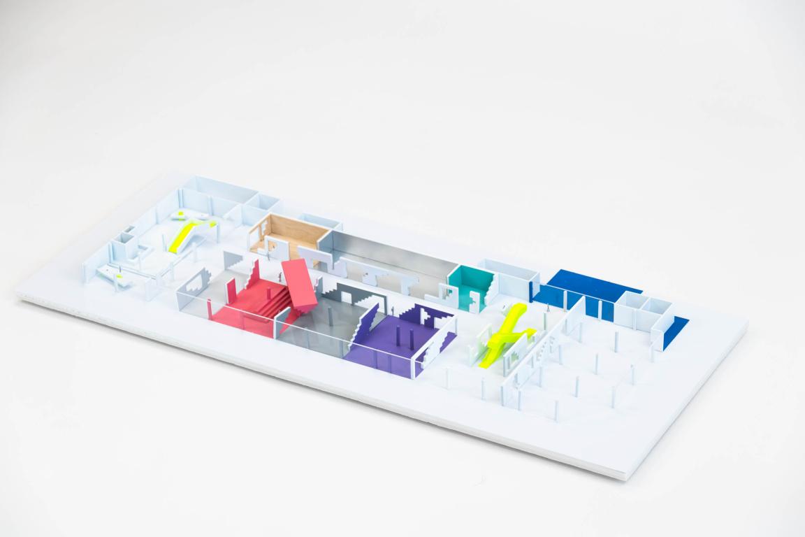 CLOU architects explored two spatial strategies to address key challenges, including activating entrances, optimising circulation, balancing functions across levels, and ensuring flexibility through movable partitions.