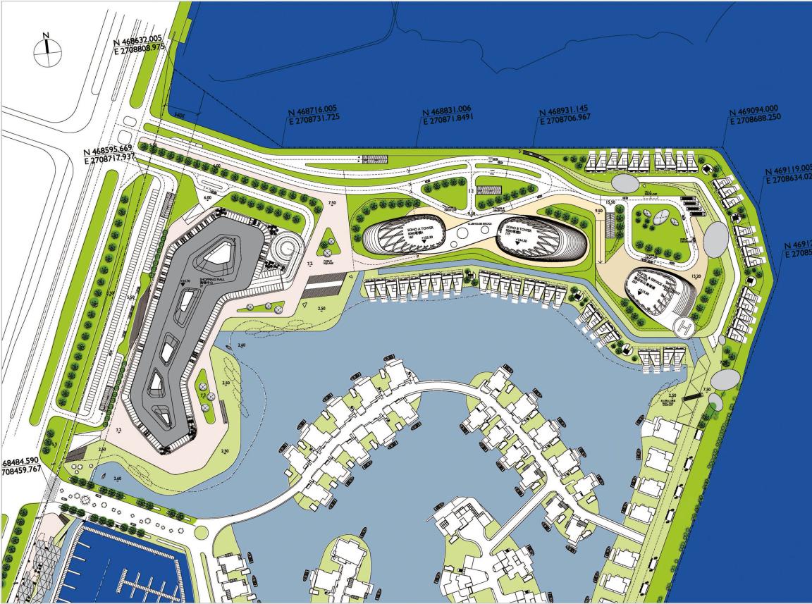 The development is designed with an estimated 1,160 parking spaces, including provisions for hotel guests, office users, shoppers, and villa residents. With integrated marina docking facilities and its proximity to major urban venues, the project supports both international visitors and local residents.